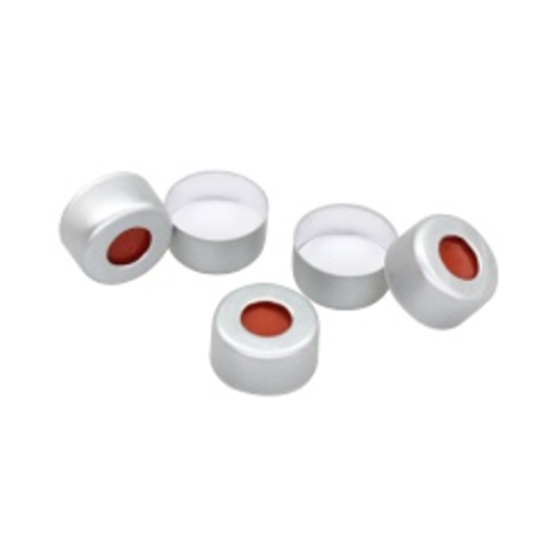 biocomma®, Crimp-top aluminum caps with pre-slit white PTFE/red silicone septa, 5.5mm hole, 100/PK + 16,000원 [품절]